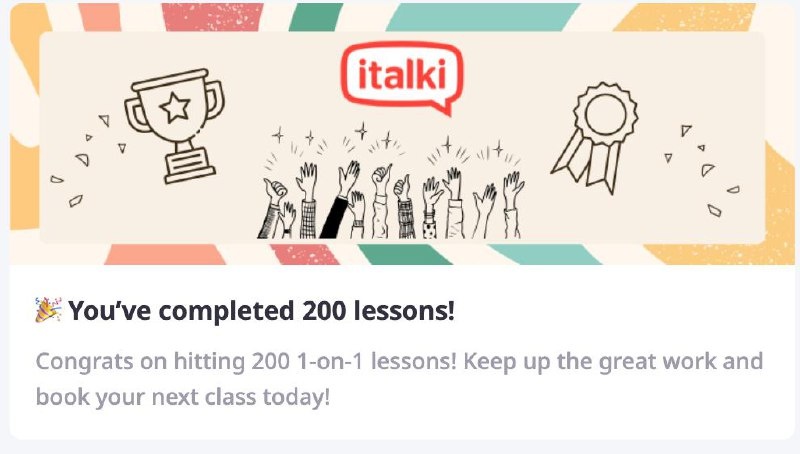 italki.com напомнил мне о том, что в мае я закончил 200 уроков английского на этой платформе