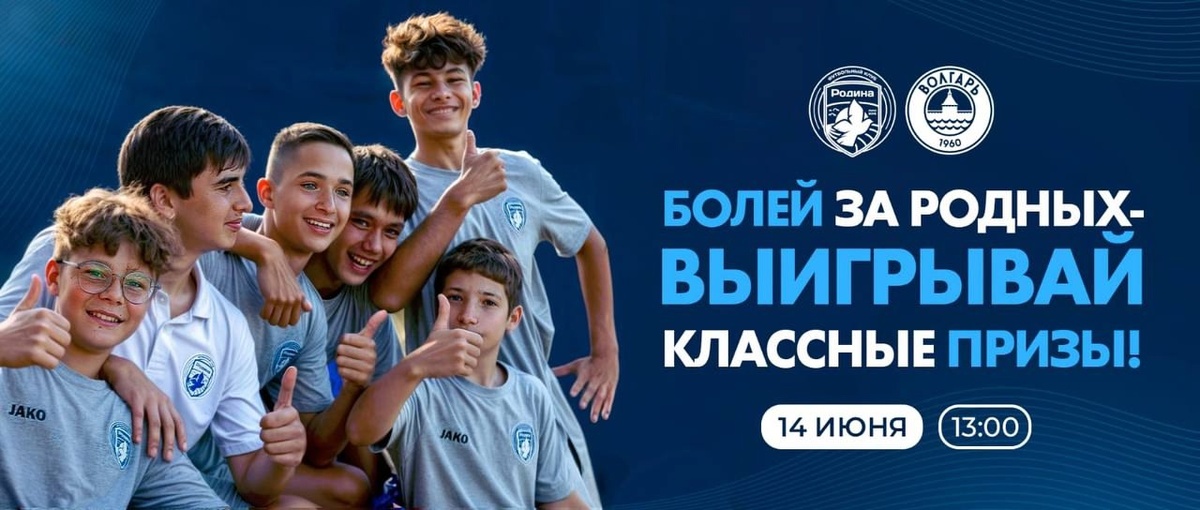 В межсезонье многие скучают по шуму трибун и эмоциям спортивного состязания. Пока у основной команды межсезонье, мы не оставим наших болельщиков без футбола! Уже в эту субботу, 14 июня, на стадионе «Родина» пройдет матч «Родина-2» – «Волгарь»! Ждем наших болельщиков на стадионе «Родина», 3-я Гражданская, д. 47! Начало развлекательной программы в 12:00. Ты сможешь не только посмотреть захватывающий футбольный матч, но и провести время с семьей! В лотерею мы разыграем подарки от клуба, среди которых два футбольных мяча, да не простых! Главный приз – мяч с автографами основного состава! Второй мяч – с автографами команды «Родина-2»! Достойный подарок для истинного фаната! Еще можно выиграть билеты на аттракционы в «Остров мечты» для всейсемьи. Для этого будь на матчдэй, переходи по QR-коду с флаера промоутера и получай заветный номерок. Еще для тебя и твоих близких на матчдэй: футбольные аттракционы, классные призы и подарки, аквагрим и сладкий стол!