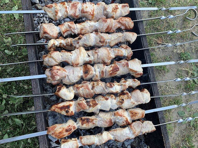 «Лето – это маленькая жизнь». А ещё лето – это пора уютных посиделок у костра, бесконечных прогулок, вкусных сезонных рецептов и самое время для того, чтобы собрать всю семью за накрытым столом, растопить мангал и насладиться едой с дымком. Предлагаю вам подборку простых и вкусных летних рецептов. Жаркими деньками совсем не хочется постоянно стоять у плиты и думать, что приготовить. Поэтому, мы с семьёй большую часть времени проводим на даче или на природе и готовим быстрые и простые блюда. Кстати, большинство летних блюд готовят мужчины, поэтому не будем им отказывать в этом деле и полностью доверим летнюю кухню и мангальную зону. Итак, нарезаем мясо кубиками. Лучок нарезаем полукольцами, солим его и мнём руками, чтоб он стал сочнее. В мясо добавляем тимьян, соль, перец и хорошо перемешиваем, чтобы все приправы впитались в мясо и растворились. Следом добавляем в мясо лук и минеральную воду.