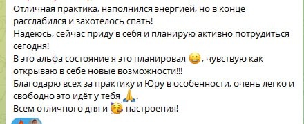 ☀️Свет внутри. Энергия, наполняющая тело. Рой мыслей, начинающий растворяться с первым вдохом. Это не фантазии. Это отзывы с курса "Энергия жизни". Сегодня практиковали медитацию потока. Приходи в эту субботу в 11.00 на живую онлайн встречу в клубе https://t.me/yasnostzdes Ты можешь почувствовать своё тело так, как не ощущала никогда.