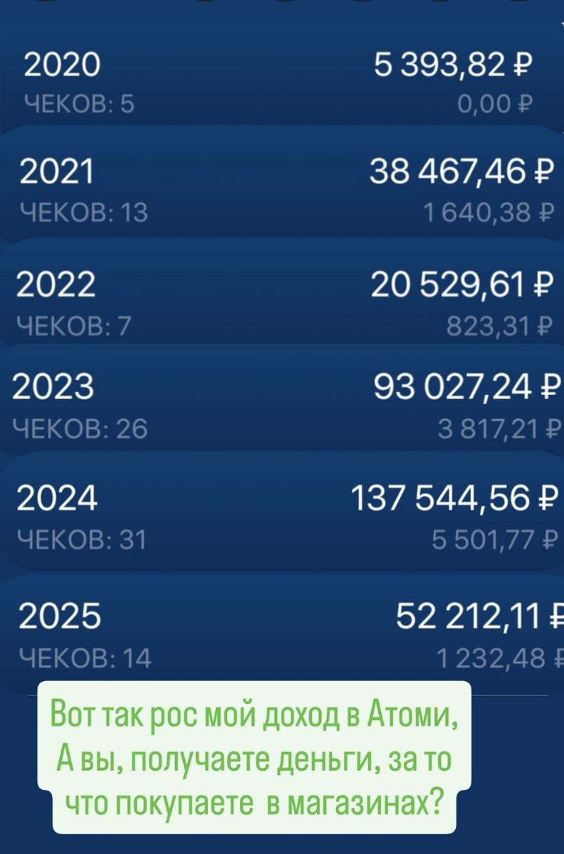 А вот так рос мой доход за то, что я покупаю продукцию в своём онлайн магазине Атоми, а вы получаете деньги за то что тратите их в чужих