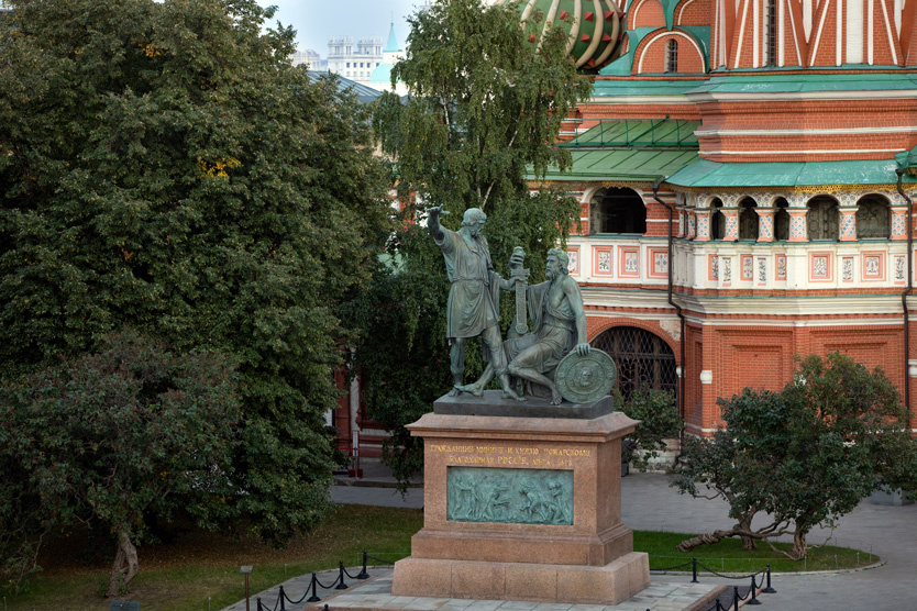 Интересные факты: средства на монумент собирали по всероссийской подписке, но основную сумму внес император Александр I. В 1931 году памятник передвинули на 150 метров, чтобы освободить место для военных парадов; На барельефе постамента изображен сбор пожертвований — среди фигур есть автопортрет Мартоса и его сыновей.