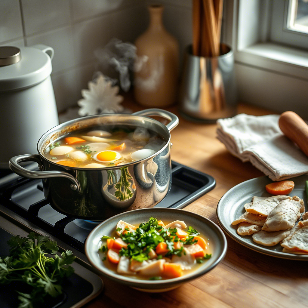 🍲 Щавелевый суп 🧾 Ингредиенты (на 4 порции): - 1,5–2 литра воды или куриного бульона - 300 г куриного филе (или другое мясо по желанию) - 3–4 картофелины - 1 небольшая луковица - 1 морковь - 200–300 г свежего щавеля - 2 яйца - 2 ст. ложки сметаны (по желанию) - 1 ст. ложка растительного масла - Соль, перец, немного сахара — по вкусу - Зелень (петрушка, укроп) — для подачи 👨🍳 Способ приготовления: 1. Подготовка: - Картофель очистите и нарежьте кубиками. - Лук мелко нарежьте, морковь натрите на тёрке. - Щавель вымойте и нарежьте крупно. - Яйца разбейте в чашку, добавьте 2–3 ст. ложки воды или молока и слегка взбейте. 2. Готовим бульон: - В кастрюлю налейте воду или используйте заранее приготовленный куриный бульон. - Добавьте кусок куриного филе (можно целиком), доведите до кипения и варите на среднем огне около 15–20 минут, пока мясо не станет мягким. - Выньте курицу, немного остудите и нарежьте тонкими полосками или кубиками. - Верните мясо обратно в бульон. 3.