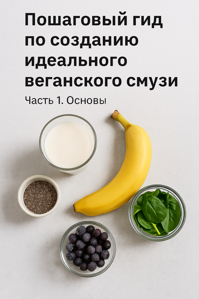 Часть 1. Основы (Серия: Веганские напитки) 🌿 Почему смузи — это идеальный веганский завтрак? Смузи — это не просто модный напиток. Это полноценный, питательный и быстрый способ насытить организм витаминами, клетчаткой и энергией с самого утра. Особенно если ты придерживаешься веганского образа жизни. Главное — знать формулу идеального смузи, и тогда ты легко сможешь готовить новые вариации каждый день. 🧪 Формула идеального веганского смузи: 🔹 1 часть жидкости — миндальное, овсяное, кокосовое молоко или вода 🔹 2 части фруктов — бананы, ягоды, яблоки, груши, манго 🔹 1 часть овощей (по желанию) — шпинат, капуста кейл, морковь 🔹 1–2 добавки — семена чиа, льна, орехи, ореховая паста, протеин 🔹 Лёд или замороженные фрукты — для текстуры и прохлады 💡 Совет: сначала налей жидкость, затем добавляй остальные ингредиенты — так блендеру будет легче справиться с задачей. 🔪 Пошаговая инструкция ✅ Шаг 1. Подготовка ингредиентов * 1 стакан миндального молока * 1 банан * ½ стакана за