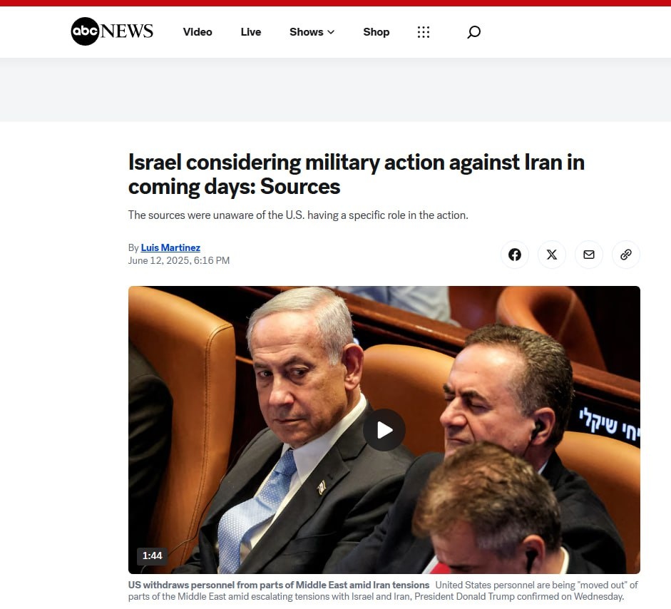 ⚡️ Израиль рассматривает возможность военных действий против Ирана в ближайшие дни, — ABC