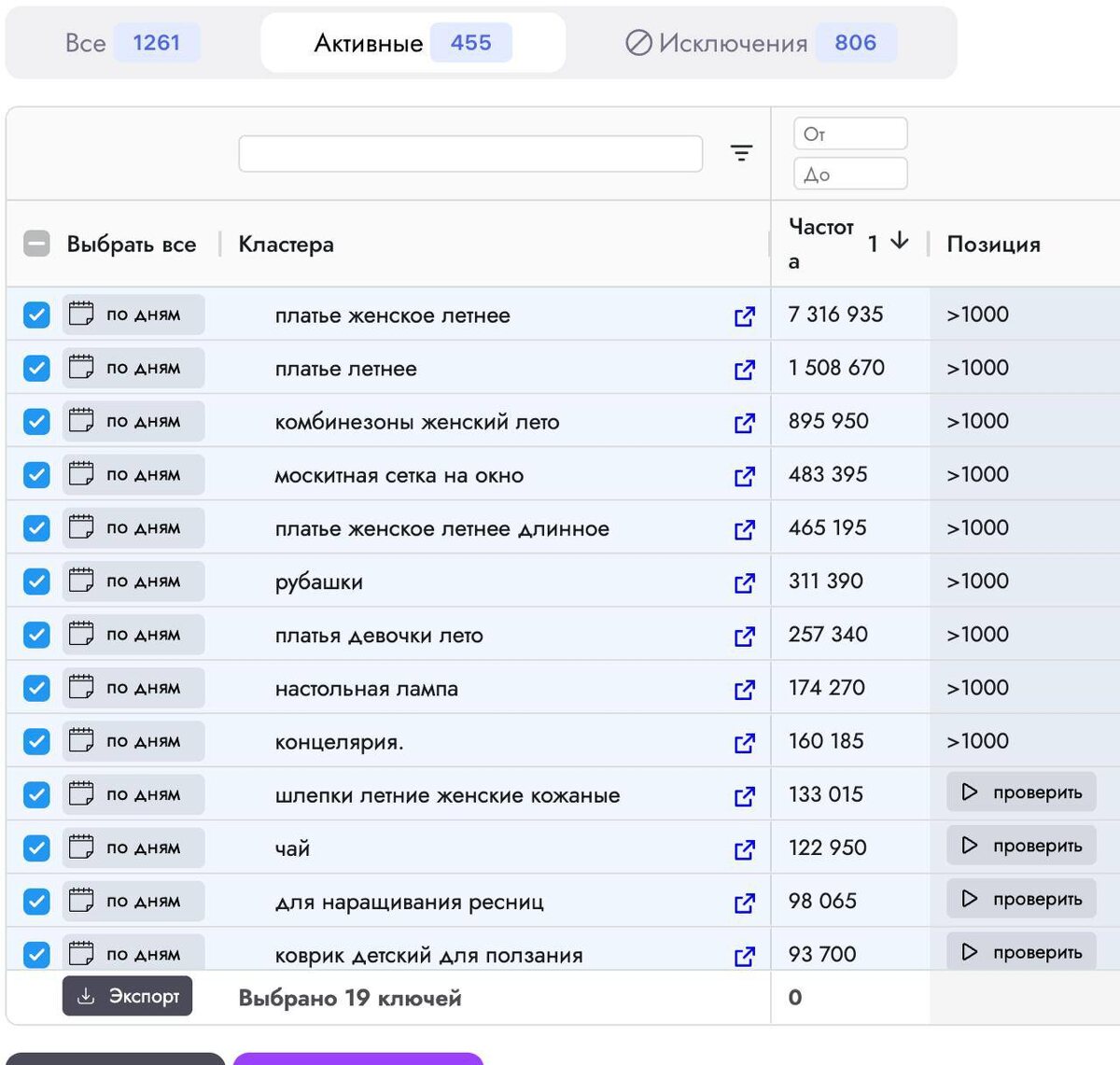 В стране выходной день, вечер. А ВБ в рекламные кампании подсовывает неликвидные супер высокочастотные ключевые слова. Чтобы дойти до первого в/ч ключа относящегося к моему товару пришлось пройти 19 мусорных ключей. Не знаю, специально это происходит в выходные или нет, но на другой РК Аукцион, к 10 закрепленным ключам система плюсанула 519! в/ч ключей неликвида. Проверьте у себя, особенно если бюджет расходуется больше требуемого