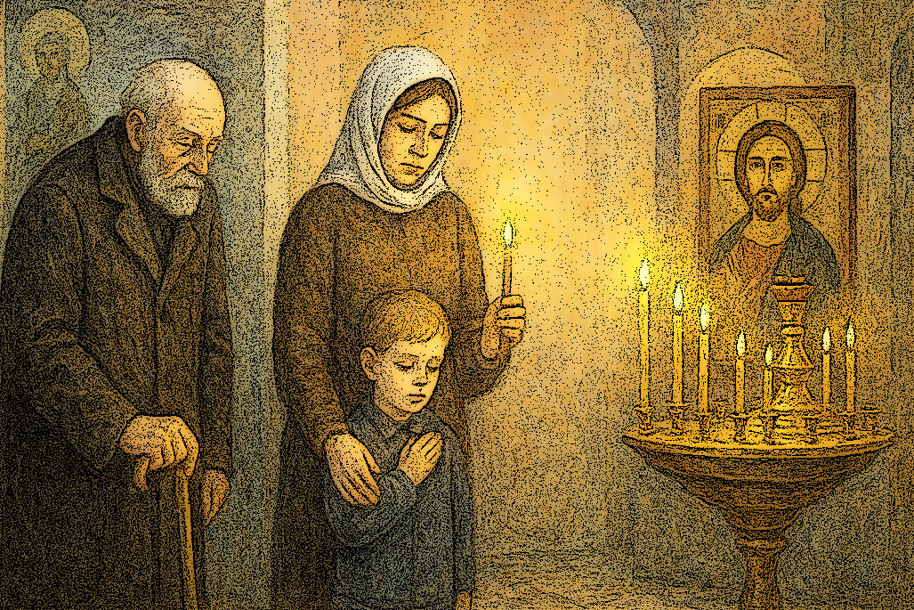 «Где двое или трое собраны во имя Мое, там Я посреди них» (Мф. 18:20). Утро было тихим. Как будто сам воздух боялся дышать. Я вошел в храм еще до начала службы – чтобы немного помолчать, прийти в себя. Было холодно, пол скрипел под ногами, лампады еле потрескивали. В храме были трое. Старик стоял у стены, чуть покачивался, как дерево на ветру, и что-то невнятно шептал. Его пальцы дрожали, но он упрямо держал в руках молитвослов. Лицо было выжжено временем, но в нем было что-то детское – полное доверие. Женщина стояла ближе к иконам. Она не крестилась, не кланялась, просто стояла – неподвижно, тяжело, будто у нее внутри был камень. Лицо бледное, платок завязан неряшливо. Плакала ли она – не знаю. Может, и плакала. Но главное – она была здесь. Пришла. Ребенок лет семи стоял у двери. Мальчик в большой куртке, которую на нем кто-то застегнул неправильно. Он пытался креститься, как видел у других, но путал порядок, трогал то лоб, то плечо, оглядывался. Я смотрел на них и вдруг понял: я не