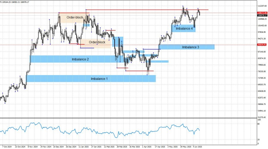 https://basechop.ru/wordpress/?p=46094 Добрый день, уважаемые трейдеры! Биткоин продолжает формирование «бычьей» структуры тренда. Таким образом, трейдерам в текущей ситуации остается только ждать цену в зонах интереса для себя, чтобы иметь возможность открыть покупки и просоединиться к тренду. Такими зонами могут выступать только имбалансы 3 и 4. Ближайший из этих имбалансов был достигнут, а цена получила реакцию. Поэтому паттерн отработан и больше не являются рабочим. Целей сверху по-прежнему нет, так как так дорого биткоин не стоил никогда. Но, если так можно выразиться, ближайшая цель в виде зоны последнего пика, была достигнута. Биткоин может продолжать рост дальше, но минимальная цель отработана. Возврат котировок в любой имбаланс означает, что цена отбалансирована и основное движение может быть продолжено. Для меня эти зоны являются возможностью для формирования позиций, но внутри них должны быть получены разворотные паттерны или подтверждающие сигналы на младших графиках. Я…