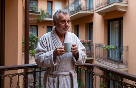 Подъезжаю к дому и вижу, на нашем балконе стоит какой-то мужик в моем халате, пьет кофе...