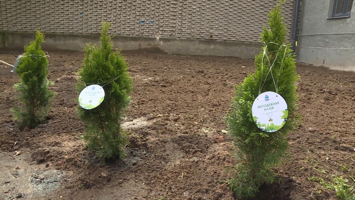 Двенадцать туй в честь дня России высадили сегодня в Пскове участники молодежных патриотических, общественных и экологических организаций