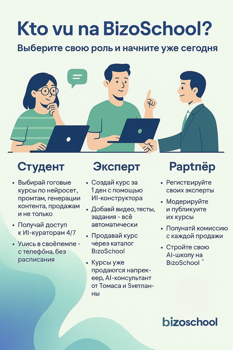 🎓 Кто вы на BizoSchool? Выберите свою роль и начните уже сегодня