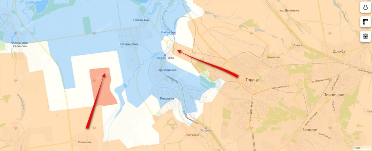 🔻 Со стороны Романовки наши бойцы преодолели более 3 км, вышли к юго-западным окраинам Катериновки и закрепились на высоте 155 м.