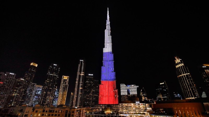 Российский флаг появился на фасаде главного небоскреба Дубая