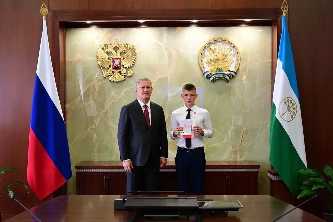 Участник Движения Первых нашего района, Никита Панченко, получил свой первый паспорт гражданина Российской Федерации из рук Главы Республики Башкортостан Радия Хабирова. Сегодня в Доме Республики г. Уфы состоялась торжественная церемония вручения первых паспортов активистам Движения Первых в рамках Всероссийского проекта «Мы – граждане России», приуроченная к празднованию Дня России. 17 юных активистов, среди которых спортсмен и участник Движения Первых нашего района, Никита Панченко, получили свои первые паспорта граждан Российской Федерации из рук Главы Республики Башкортостан Радия Хабирова. Помимо этого ребятам провели экскурсию в Центре Управления Республики Башкортостан, где они смогли узнать много новой и полезной информации о взаимодействии органов исполнительной власти с населением.