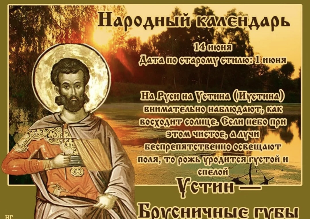 В субботу 14 июня 2025 года в народном календаре – Устин-брусничные губы, Устинов день, Устин и Харитон. Этот день крестьяне посвящали посеву гречихи. Православная церковь 14 июня вспоминает мучеников Иустина Философа и другого Иустина и с ними Харитона, Хариты, Евелписта, Иеракса, Пеона и Валериана. ❇️ПРИМЕТЫ ✔️Красное утро – красный налив ржи. ✔️Утром пасмурно – к урожаю яри. ✔️Радуга в первой половине дня – к дождю. ✔️Бледное солнце утром – к вечеру выпадут осадки. ✔️Сосна звенит, а дуб стонет – к буре. ✔️Грачи играют – на хорошую погоду. ✔️Если грачи ходят по траве, а лягушки выползли на берег, будет дождь. ✔️Дождливый и пасмурный день – к урожаю льна и конопли. ✔️Если небо хмурится, а цветы лютика раскрылись, то дождя не будет. ✔️Лебеди вечером раскричались – на дождливую погоду. ✔️Скворец начал своих детенышей летанию обучать – пора сеять гречку. ❌ЧТО НЕЛЬЗЯ ДЕЛАТЬ ✔️В Устинов день 14 июня нельзя делать защитные обереги, амулеты и талисманы. У наших предков бытовало поверье