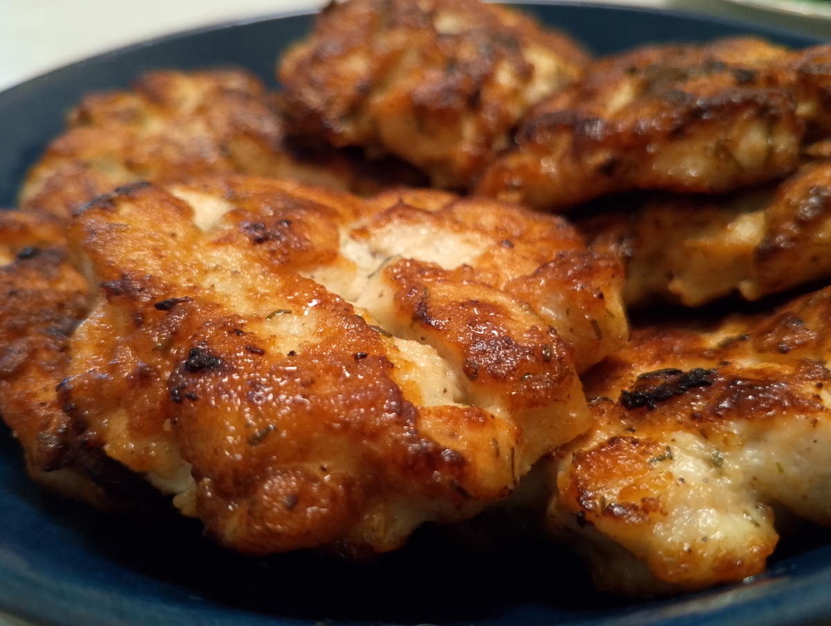 Рубленные котлеты из курицы на сковороде - это просто и быстро способ приготовить вкусный сытный ужин или обед. Рубленные котлеты получаются очень сочными и нежными благодаря тому, что куриное мясо мелко нарезается ножом. Приготовить такие котлеты можно за 20 - 30 минут, а подавать их можно с любым гарниром или овощами. Куриное филе - 500 г Лук репчатый - 1 шт Чеснок - 2 зубчика Хлебный мякиш - 70 гр Яйца - 1 - 2 шт Молоко - 50 мл Соль - по вкусу Зелень - укроп Перец чёрный молотый - по вкусу Паприка молотая - по вкусу ( при желании ) Растительное масло - для жарки 1. Куриное филе промываем, обсушиваем бумажным полотенцем и нарезаем кубиками размером примерно 1×1 см. 2. Лук репчатый очищаем и мелко нарезаем. Чеснок очищаем и пропускаем через пресс. Хлебный мякиш замачиваем в молоке на 5 - 7 минут. 3. В большой миске смешиваем куриное филе, лук, чеснок, хлебный мякиш, яйца, укроп, соль, перец, и паприку ( если используете ). Тщательно перемешиваем все ингредиенты. 4. Разогреваем сково
