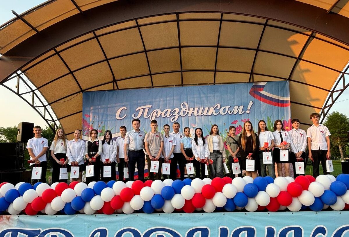 В ст. Гиагинской прошло торжественное мероприятие, посвящённое празднованию Дня России. Огромное количество жителей станицы собралось в Центральном парке, у каждого в руках и на одежде был российский триколор, как символ любви и верности Отечеству. Участников праздничного мероприятия приветствовал первый заместитель главы администрации МО «Гиагинский район» В.Ю. Хаджимов и заместитель главы администрации МО «Гиагинский район» по социально-культурному развитию района В.Е. Ермак. Доброй традицией в День России стало вручение паспортов юным гражданам района, которым исполнилось 14 лет. Самый важный документ — паспорт гражданина Российской Федерации вручили начальник миграционного пункта МВД по Гиагинскому району В.В. Зорин и первый заместитель главы администрации МО «Гиагинский район» В.Ю. Хаджимов. Творческие коллективы района порадовали зрителей зажигательными танцами и красивыми песнями, прославляющими величие России.