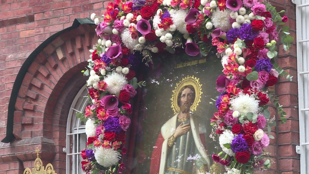 Сегодня в псковском воинском храме святого Александра Невского прошло праздничное богослужение. 12 июня - день рождения святого благоверного князя Александра Невского - для храма престольный праздник. На водосвятный молебен и божественную литургию собралось особенно много прихожан. Кульминацией стал торжественный Крестный ход, во главе которого храмовую икону пронесли военнослужащие. Русской православной церковью благоверный князь причислен к лику святых и считается покровителем воинов и всех защитников Отечества. "Любовь народа к своему благоверному князю не иссякает спустя 800 лет. Сегодня мы видим стечение людей, полный храм, люди пришли восславить его имя, попросить у него представительства перед Господом, скорейшего восстановления мира на нашей земле", - Александр Короплясов, настоятель воинского храма Александра Невского г. Пскова.