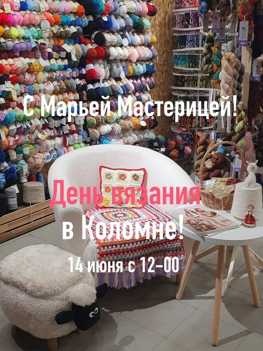 14 июня Всемирный День Вязания на публике в Коломне!❤️ Дождь не страшен! ❤️Марья Мастерица приглашает к себе в Голутвин в ТК Экспресс всех желающих! Творческая атмосфера, вязание, красота, отличная пряжа! Приятное общение и яркие эмоции гарантируем!✨🌺✨ ❤️Место встречи: Творческое пространство Марья Мастерица (Голутвин, ул.Октябрьской революции, 353, ТК Экспресс, 2 вход, 2 этаж (комплекс справа от Кадо со стороны Сбера, где Фикспрайс)) 14 июня в 12 часов. И до 17 часов, как минимум! В программе: 🌺Вязание и похвастушки - приходите со своими вязальными проектами, крючками и спицами 🌺Демонстрация новейшей пряжи и образцов из неё от Марьи Мастерицы 🌺Возможность самому попробовать пряжу и связать образец 🌺Розыгрыши подарков и скидок и совместные активности 🌺Угощение - лёгкий фуршет Приглашаем вместе повязать Коломну, а ещё Воскресенск, Луковицы, Зарайск, Егорьевск и другие окрестные города и села. А также ждём гостей Коломны, всех, кто любит вязать (возможно у Вас с собой свой вязал