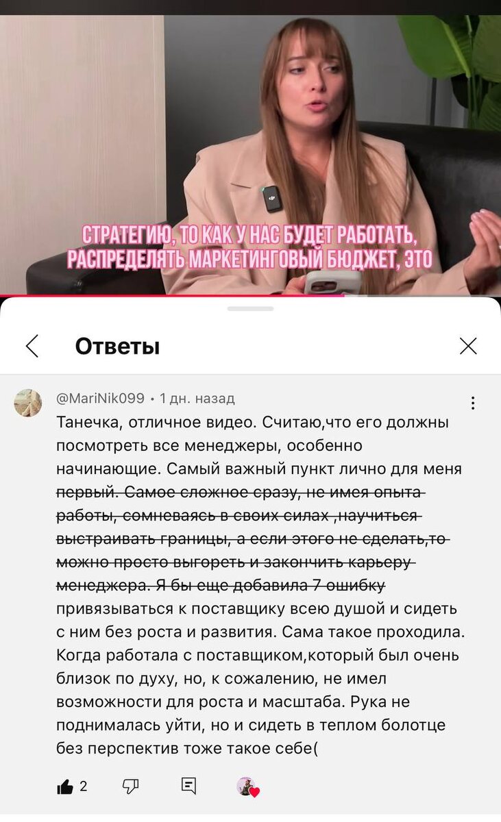 Ключевая фраза «это видео должны посмотреть все менеджеры маркетплейсов», так что - приятного просмотра! С вас там лайк/комментарий и перешлите подружке 💜 Обняла-приподняла и много денег пожелала! Ссылка на видео на YouTube здесь. P.S. Включи VPN, на 11 минут всего видео, ты сможешь осилить, я в тебя верю!