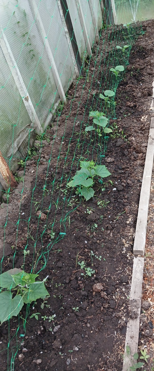 Приветствую всех своих читателей и гостей! Спасибо вам, дорогие девочки, кто читает мои новости, оставляет комментарии и лайки! Сегодня выходной , гидромецентр обещал дождь, но он пошел только в 20 часов. Поэтому весь день я провела в саду и огороде, наводила порядок в парнике, на грядках, в цветниках. В парнике прополола огурцы, уже усы наросли, натянула сетку, пусть цепляются, быстрее рост пойдет! Посеянные сухими семенами почти догнали рассаду. Поэтому в очередной раз убеждаюсь, что рассада не нужна. Семена посаженные в теплую землю всегда ее догоняют. У помидоров удалила пасынки и нижние листья! Уже цветут, и завязываются помидорки! А это мои питомцы в бочках. С наступлением тепла по ночам растут быстро. Под яблонями у меня обитает ремонтантная земляника. Сажала ее давно, потом она исчезла. И вот два года назад начала разрастаться так, что победила все сорняки. И я этому очень рада. И полезно и красиво. Уже начали краснеть ягодки, можно полакомится. Вперемежку с ней расте