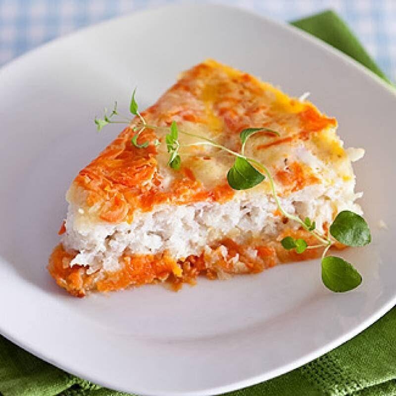 Ингредиенты: • рыба белая – 250 г. • лук – 1/4 шт. • морковь – 1 шт. • яйцо – 1 шт. • молоко – 2 ложки столовых Приготовление: 1. Рыбу и лук перемолоть в фарш. Посолить. 2. Морковь натереть на мелкой тёрке. 3. Яйцо перемешать с молоком. 4. Выложить в форму для запекания рыбный фарш, потом морковь, сверху залить яйцом. 5. Готовить на пару 20 минут или запекать в духовке под фольгой минут 25 при 180 градусах. Подпишись на мой канал в ТГ👆