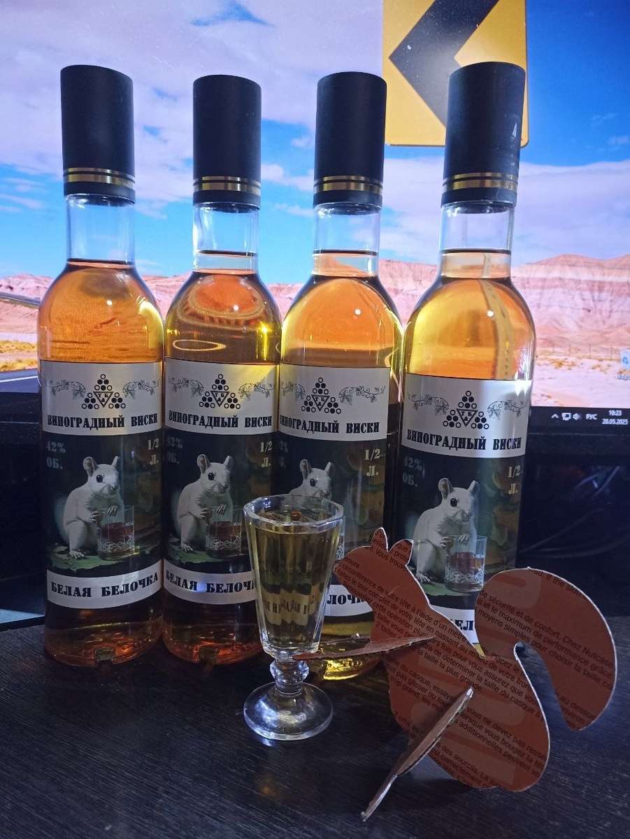 Резюме. Итак. Во первых я согласился на эту авантюру с одной единственной целью-попробовать неизвестного мне зверя по имени МЯСОГОН. Попробовал, первый вывод: это действительно ни разу не самогон! Ни малейших его нот я не уловил, как ни старался! Так что за работу с головами и хвостами автору дистиллята уверенная пятёрка. Второй вывод: почему это МЯСОГОН я таки не понял. Никакого намёка на кур я не учуял ровно также как и коров, с головами и хвостами. Третий. Не понятно, почему сей напиток с виноградным соком и железобетонной доминантой можжевельника называется виски... Надо было ДЖИНОМ назвать! Прокатило бы, уверен! Четвёртый. Аромат мне весьма зашёл, но пить это форменно невозможно! Сладость портит весь напиток, делая его попросту отвратным. И по факту отличный авторский напиток превращается в совершенно дешманистую настойку с килограммом сахара на бутылку... Ручаюсь, его даже стопками пить противно! Ну, по крайней мере я б не смог. Так что позиционирование напитка в его виде мне вообще не понятно. НО! Если снизить чумовую сладость до приемлемых показателей- напиток уже вполне будет диджестивно-застольным и не требующим закуски. Как минимум я его таким легко вижу! Так что, Юрий Артурович, перкращайте детские баловства с сахаром! Заявляете себя серьёзным человеком- так давайте и действовать по-серьёзному, с натуральным естественным вкусом, а не с помошью совершенно не нужных напитку и вам сахарных улучшайзеров! Напиток у вас получился, и прятать за сладость здесь я просто не вижу что! Мой итоговый вывод: напиток удался! Но из-за страшной сладости его попросту не разобрать! Я б лично её убрал... Оценка: Аромат-4, Вкус-2 (из-за сахара), послевкусие-3. Итого, моими 56. (50-водка, 60+ начальный дистиллят, 70+ хороший дистиллят).