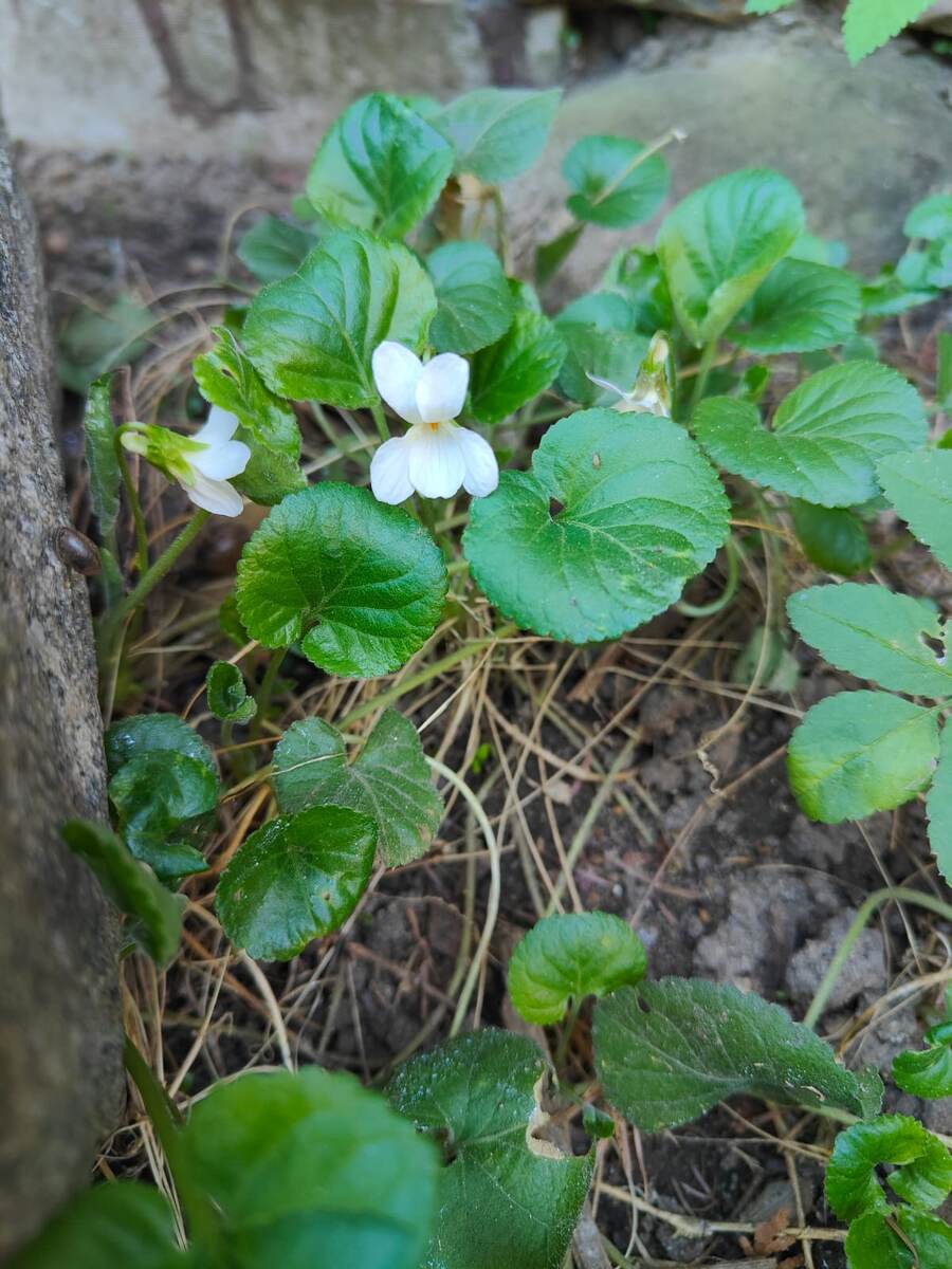 В прошлом году фиалка зацвела, оказалось белой. Я так и предполагала, потому что на нашей улице через участок такие же растут. Логично, что оттуда семечко занесло.