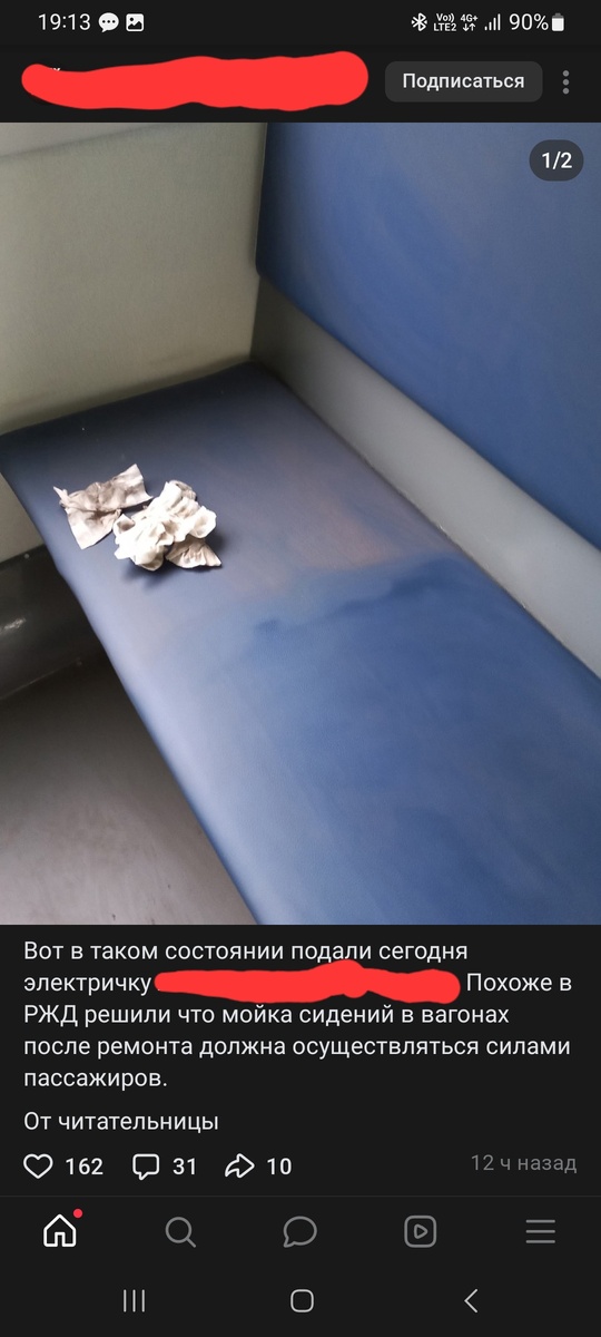 В сообществе ВК наткнулись на такой пост-возмущение. Крик души пассажира, наткнувшегося утром на грязные сиденья электрички. Но зацепила нас, конечно, не сама ситуация и даже не отсутствие пунктуации, а сделанный вывод-обобщение: Похоже в РЖД решили, что мойка сидений в вагонах после ремонта должна осуществляться силами пассажиров. Сама по себе ситуация - грязный вагон - "не стоит выеденного яйца". Некая не самая большая станция. Какой-то вагон. На этой станции то ли произошла халтура, то ли ошибка. Возможно прицепили не тот вагон. Или уборку не провели. Не успели. Или еще что. Может какой-то уборщик с не самой высокой зарплатой поленился. Или у него случилось чего. Конечно, человеческий фактор. Неприятно. Но и мы в молодости покатались на электричках и всякого навидались. Неотапливаемые вагоны. Незакрывающиеся двери. Бывает. Думали ли мы тогда, что это "РЖД так решили"? Нет. Нам в молодости хватало ума отделять местечковую глупость и разгильдяйство от корпоративных решений. А еще н