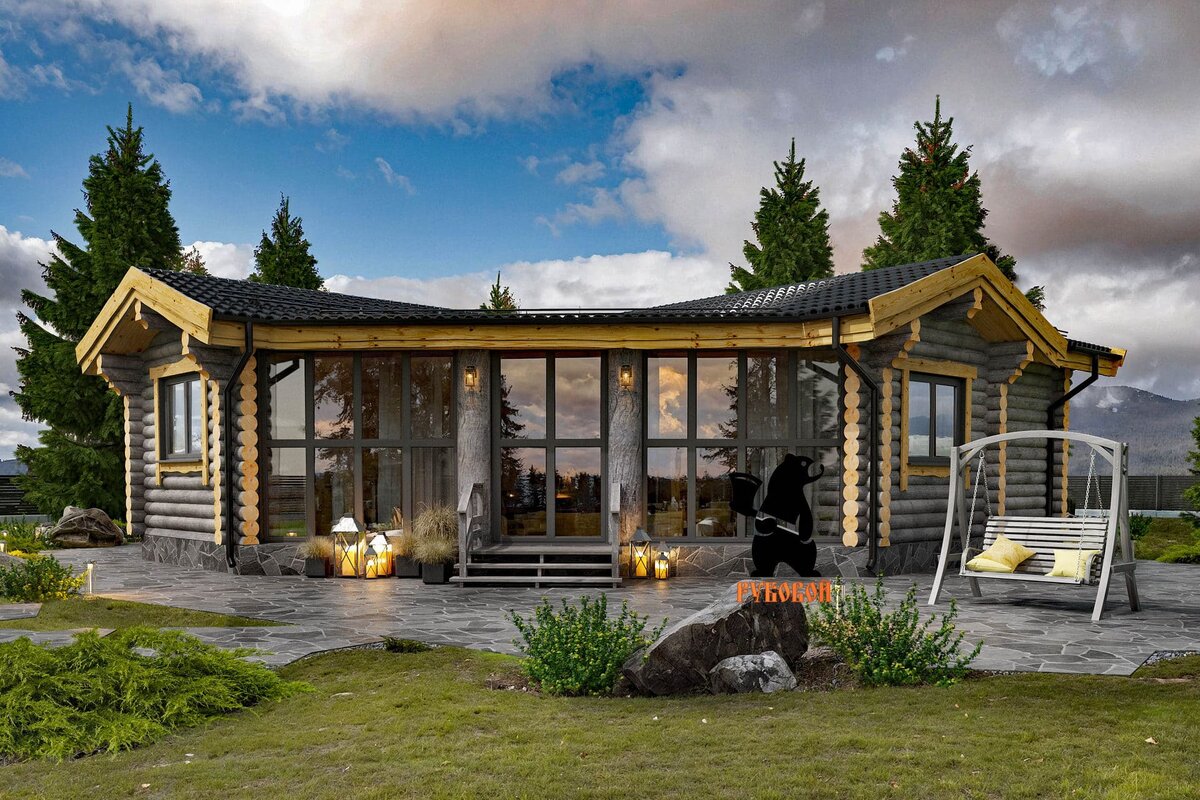 В проекте: комната отдыха с кухней и зоной релакса, русская парилка на дровах, застекленный павильон с обеденным столом, тёплый тамбур, моечная, санузел, помещение с бассейном.