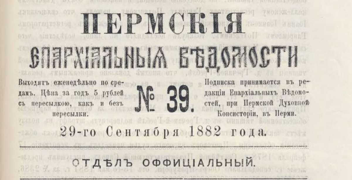 В 1882 году в Пермских епархиальных ведомостях был опубликован обширный цикл заметок о практических вопросах приходской жизни. Уже в следующем, 1883 году, выдержки из этих публикаций перепечатали епархиальные издания от Пензы до Волыни. География говорит сама за себя: обсуждаемые проблемы были знакомы многим.