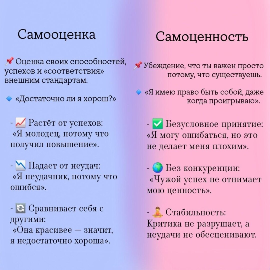 Многие думают, что самооценка и самоценность — это как близнецы-братья. Но на самом деле они больше похожи на кофе и круассан: вместе — идеально, но по отдельности работают совсем по-разному!