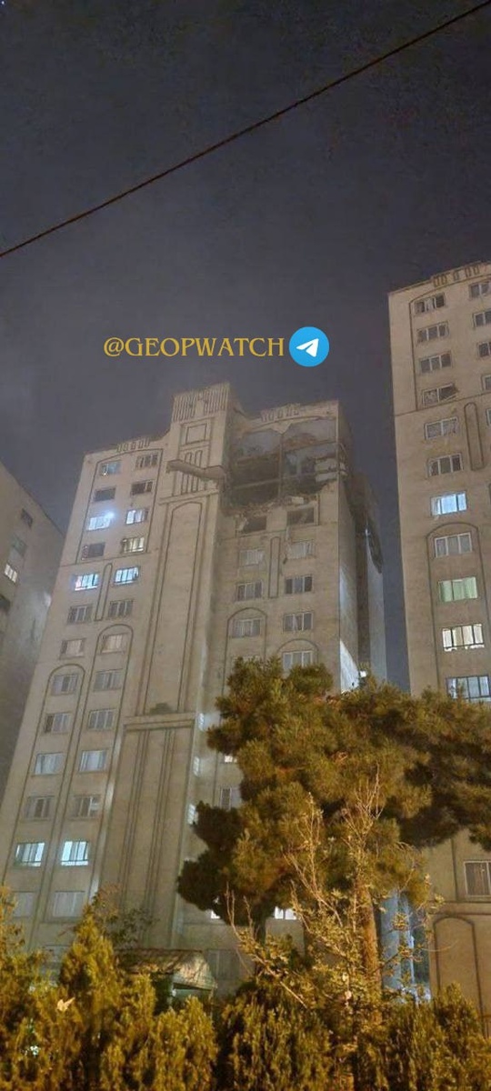 🇮🇱❌🇮🇷 — Image from Tehran shows a targeted apartment in a high level building, likely an assassination.