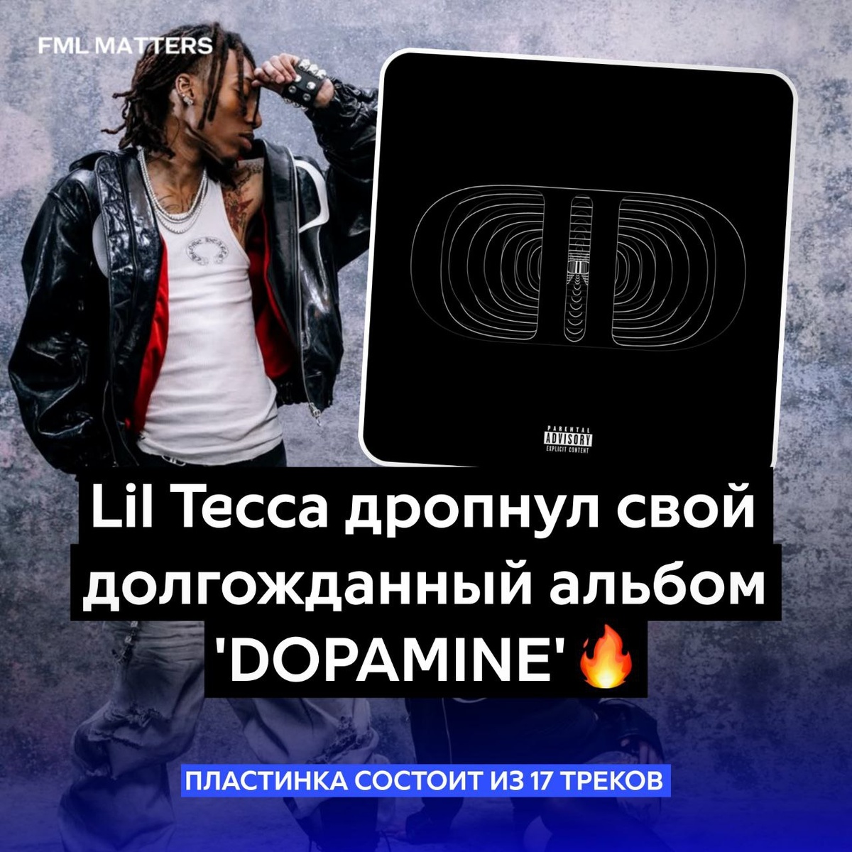 ⁉️ LIL TECCA ДРОПНУЛ НОВЫЙ АЛЬБОМ! СЛИЛИ ДО РЕЛИЗА У Рэпера должен вот-вот выйти новый альбом «DOPAMINE», но его уже слили в сеть раньше времени. На официальных платформах альбом появится совсем скоро. В альбоме 17 треков, а на фит в треке — «Tic Tac Toe» залетел Ken Carson. Послушать можно в нашем втором канале FML MUSIC 💀 FML MATTERS