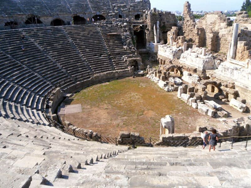 Сиде, один из древнейших городов на территории современной Турции, славится своим античным театром, построенным приблизительно во II веке нашей эры в эпоху Римской империи. Этот театр возводился с целью проведения публичных представлений, в том числе драматических спектаклей и гладиаторских боёв. Он являлся важным центром культурной жизни города, отражая высокий уровень социальной и художественной организации общества того времени.
