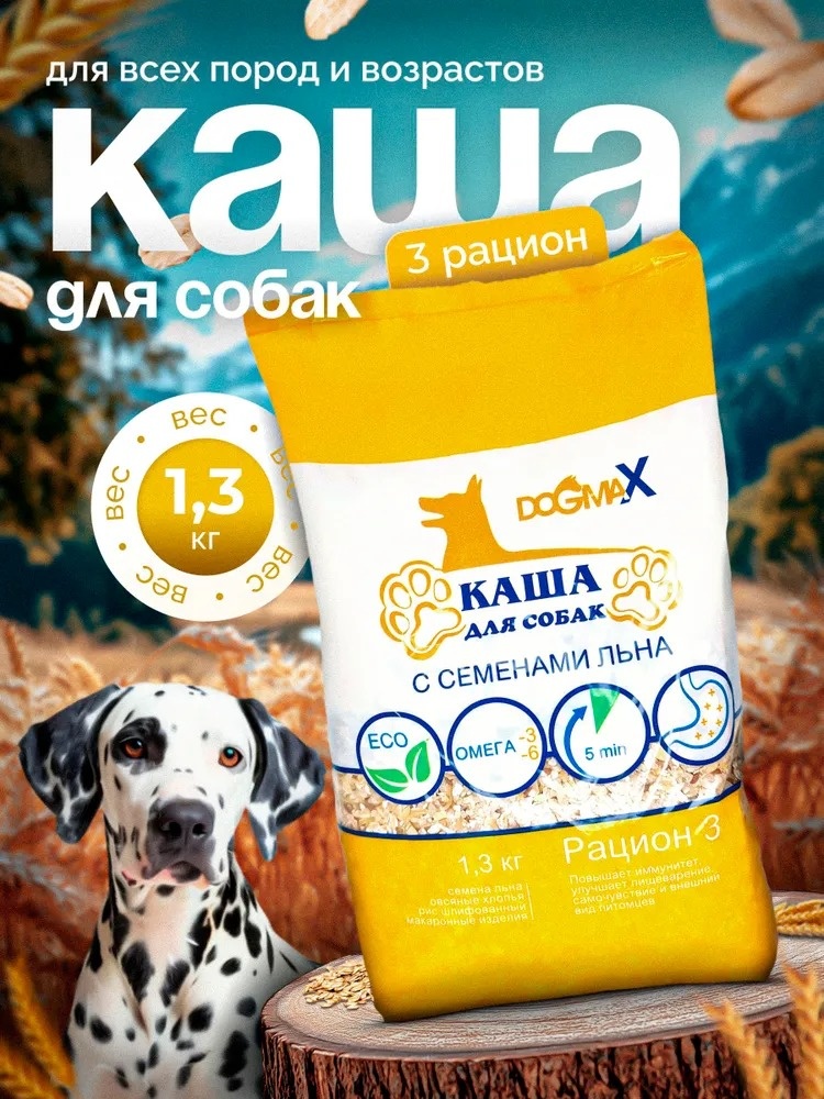 Возраст животного: Каша DoGmaX Рацион 3 разработана с учетом индивидуальных потребностей собак. Основной ингредиент — злаки, что делает эту кашу отличным источником энергии.