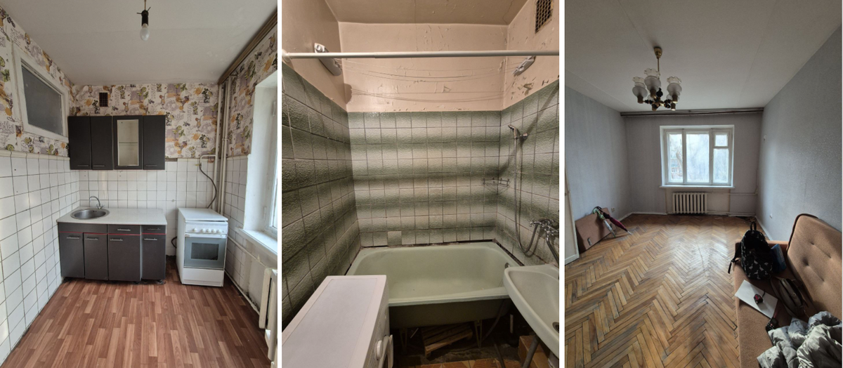 В мире, где новостройки стали дороже вторички, люди с наличными начали инвестировать в квартиры старого фонда. Так поступила и моя клиентка: на свободные 10-12 млн рублей она купила небольшую однокомнатную квартиру 27,3м2 в трех минутах ходьбы от метро Октябрьское поле. Квартира на втором этаже пятиэтажного дома 1964 года. Территория дома ухоженная, подъезд чистый и аккуратный, а вот сама квартира, кажется, вообще не знала ремонта. По крайней мере, есть ощущение, что санузел остался в первозданном виде. Вот такой объект я приняла в работу в марте этого года. Задача: сделать полный демонтаж, ремонт с заменой проводки и комплектацию мебелью. План: сдавать квартиру долгосрочно, а в будущем, возможно, продать. Да, и если мы еще не знакомы: меня зовут Лена Володина, я профессионально занимаюсь инвест-ремонтами и комплектацией квартир под сдачу. Более оперативно о своих объектах рассказываю в своем телеграм-канале "Пока меня не было" Квартира выходит в тихий зеленый двор, деревья буквально с