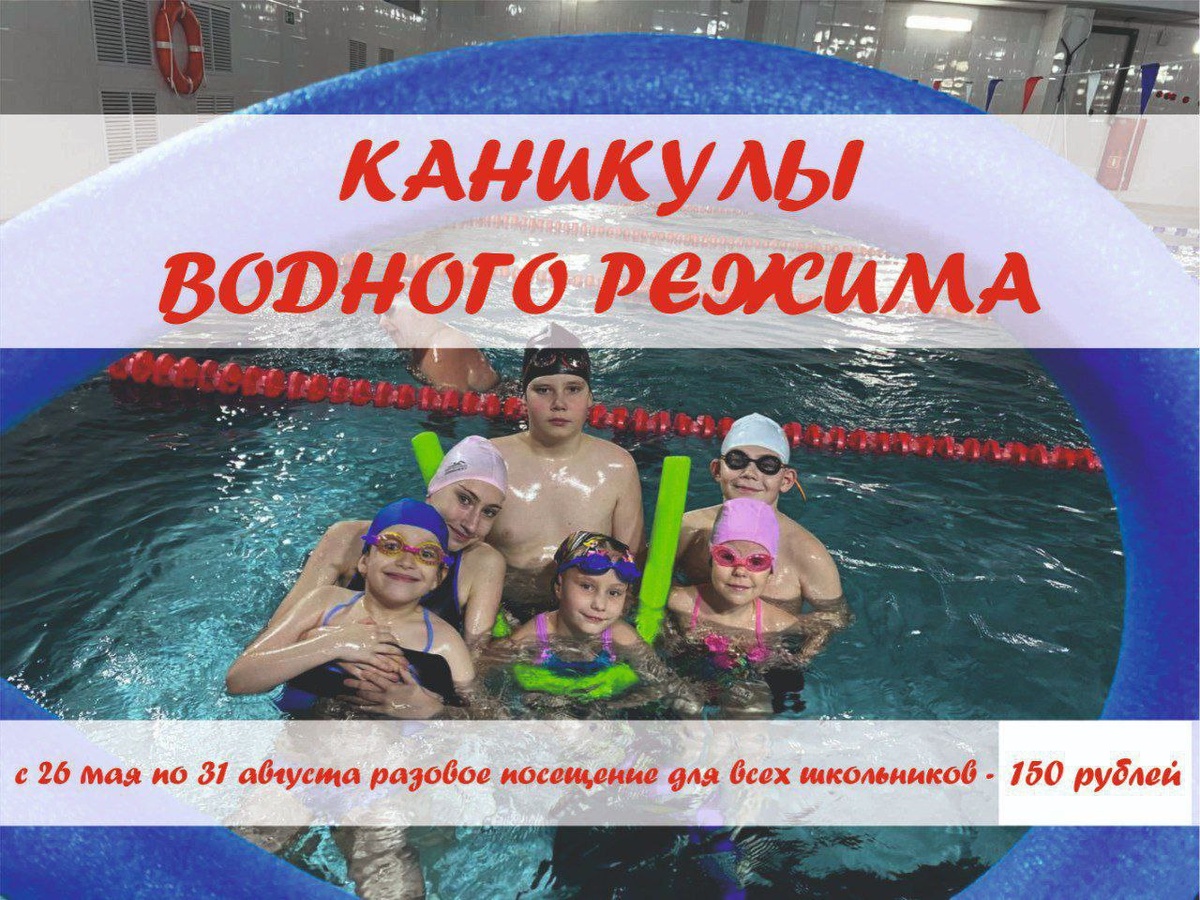 КАНИКУЛЫ ВОДНОГО РЕЖИМА"🏊🩵 ✅до 31 августа разовое посещение для всех школьников - 150 рублей✅