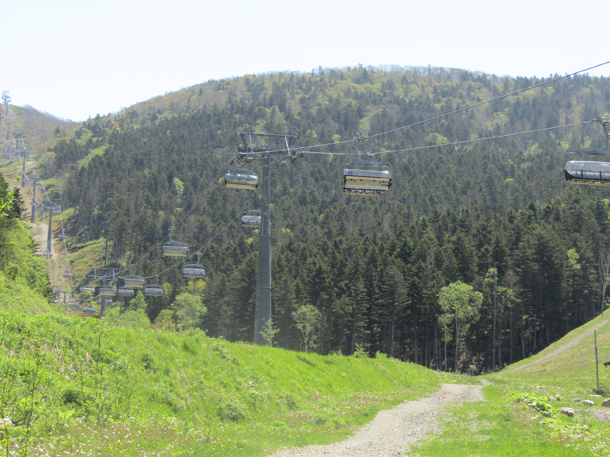 Если не хочется ехать ради красивых видов куда-то далеко, то в Южно-Сахалинске можно просто докатиться до Долины туристов. Из неё исходит пара туристических троп, а также доставляют подъёмники на сопки Большевик и Красная. Вот на последнюю-то мы и забрались пешком из Долины туристов. Путь наш пролетал по экотропе "Таёжная" - о её начале информируют стилизованные ворота, табличка и информационные щиты. Первый отрезок подъёма, пожалуй, самый крутой. Дальше будет легче. Тяжесть маршрута компенсируется постоянно открывающимися чудесными видами на Южно-Сахалинск и окружающие его горы. У тропы постоянно попадаются ручейки. Вода в них очень вкусная и чистая. Недалеко от вершины есть большая площадка, куда, похоже, приезжают и на машинах. Здесь установлена пара скамеек, и можно любоваться сахалинскими пейзажами сколько душа пожелает. Дальше последний крутой подъём, мимо беседки - и мы на вершине. Подъём занял 2 часа 20 минут, за это время мы одолели 779 метров. Обычно люди добираются на Кр