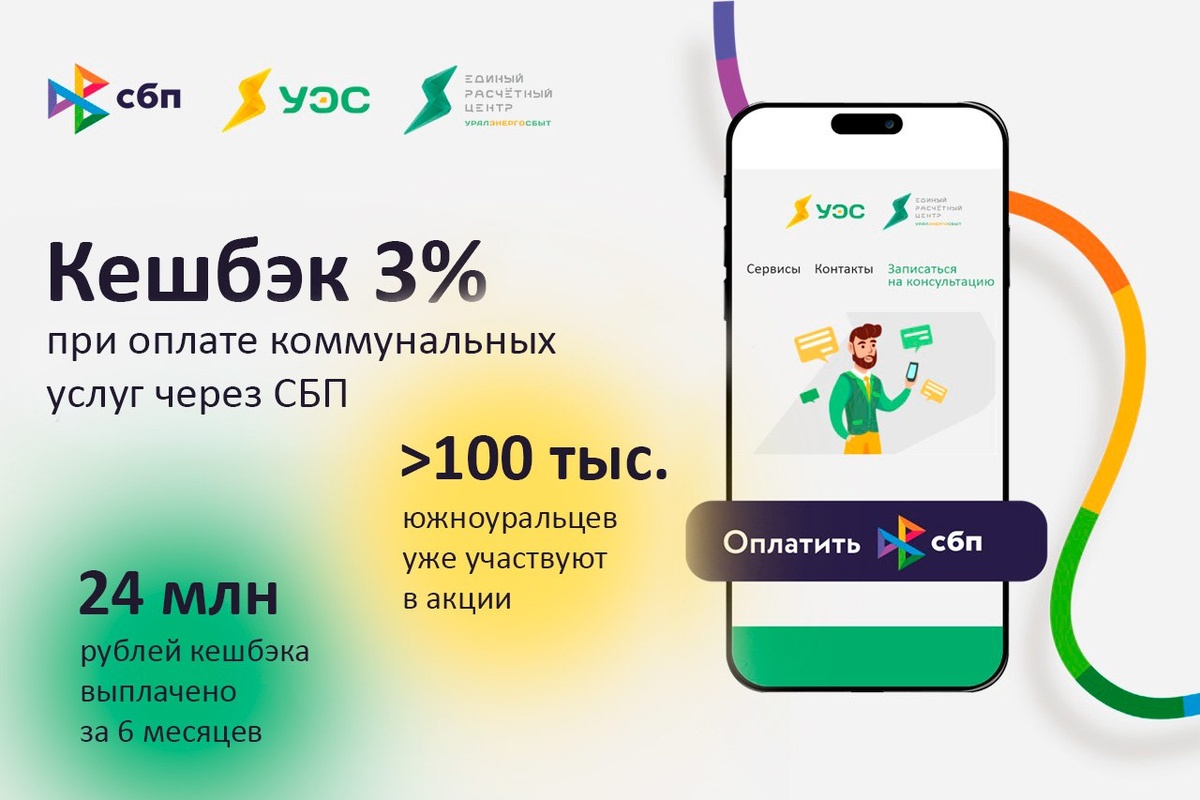 «Уралэнергосбыт» напоминает о скором окончании акции «Оплата ЖКУ с кешбэком» Акция продлится до 30 июня 2025 года по мск. Воспользуйтесь шансом и оплатите коммуналку с кешбэком*. Напомним, 3% от суммы платежа вернутся на счет при оплате через Систему быстрых платежей (СБП): ✅в личном кабинете ЕРЦ «Уралэнергосбыт», ✅в личном кабинете «Уралэнергосбыт», ✅в инфомате. Перед оплатой необходимо проверить регистрацию в программе лояльности на vamprivet.ru. Сумма кешбэка в период акции не ограничена. За 6 месяцев южноуральцы вернули 24 млн рублей. В акции приняли участие более 100 тысяч клиентов компании. Условия акции действуют до 23:59:59 30 июня 2025 г. по московскому времени. Подробнее о правилах акции можно узнать на сайте vamprivet.ru. *Кешбэк – денежное поощрение в виде возврата части средств, затраченных покупателем на приобретение товаров (работ, услуг).
