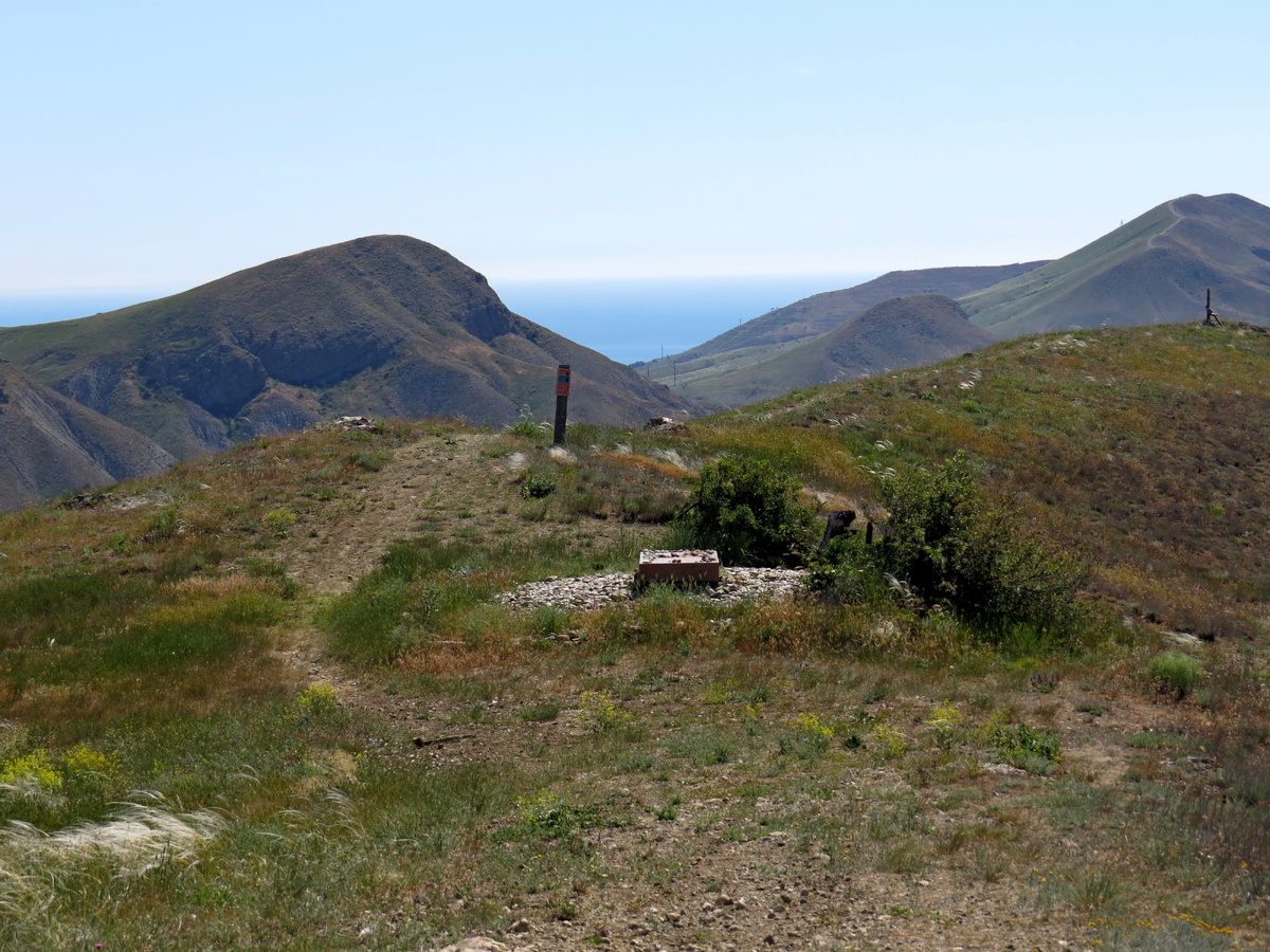 Немного дальше от тригопункта находится могила Волошина. В прошлый раз я ее не снимала, и в комментариях было много вопросов по этому поводу. В этот раз я решила все снять. Ведь не все здесь бывали или будут. Подробнее про Волошина я писала здесь - Страна Коктебель и могила Волошина. Поэтому в этот раз будем просто смотреть на окружающие виды и понимать, почему поэту так нравилось это место. И пока мы смотрим по сторонам, вспомним другого поэта – А.С. Пушкина. В августе 1820 года молодой А. С. Пушкин, направляясь из Феодосии в Гурзуф, увидел Кара-Даг с борта корвета "Або". Здесь он сочинил свою первую морскую элегию ("Погасло дневное светило...") и задумал роман в стихах "Евгений Онегин". На полях черновика рукописи 1-й главы "Евгения Онегина" Александр Сергеевич поместил рисунок скалы, в котором невозможно не узнать карадагских "Золотых Ворот". Вот мой снимок Золотых ворот, сделанный, однажды во время морской прогулки. Но, я хотела сказать совсем другое! Максимилиан Волошин одна