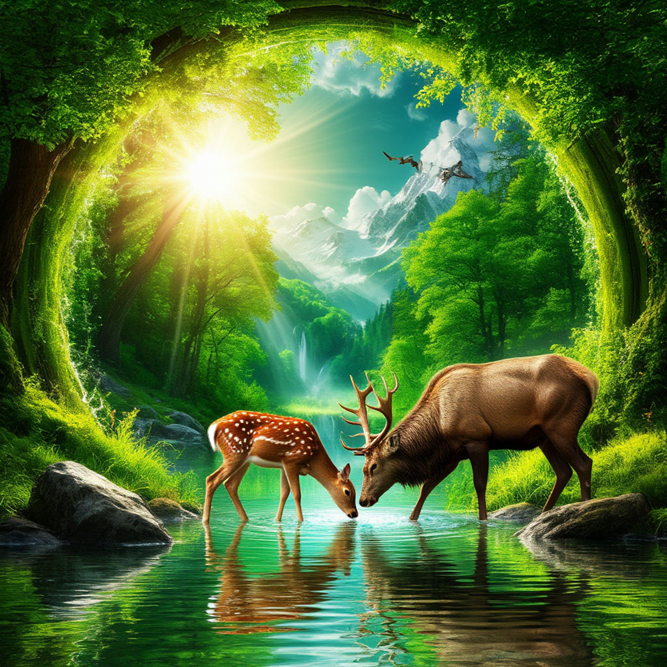 В сфере появляются яркие картины другого сопровождаемые женским голосом. В мире преобладает сочный зеленый цвет. Ярко светит солнце. Видно, и слышно, как в роднике журчит прозрачная вода. Из родника пьют воду, стоящие рядом, лань и большой зверь. В сфере проносятся деревянные малоэтажные постройки. Возле каждого дома небольшой приусадебный участок, где растут деревья с плодами, похожими на большие груши.