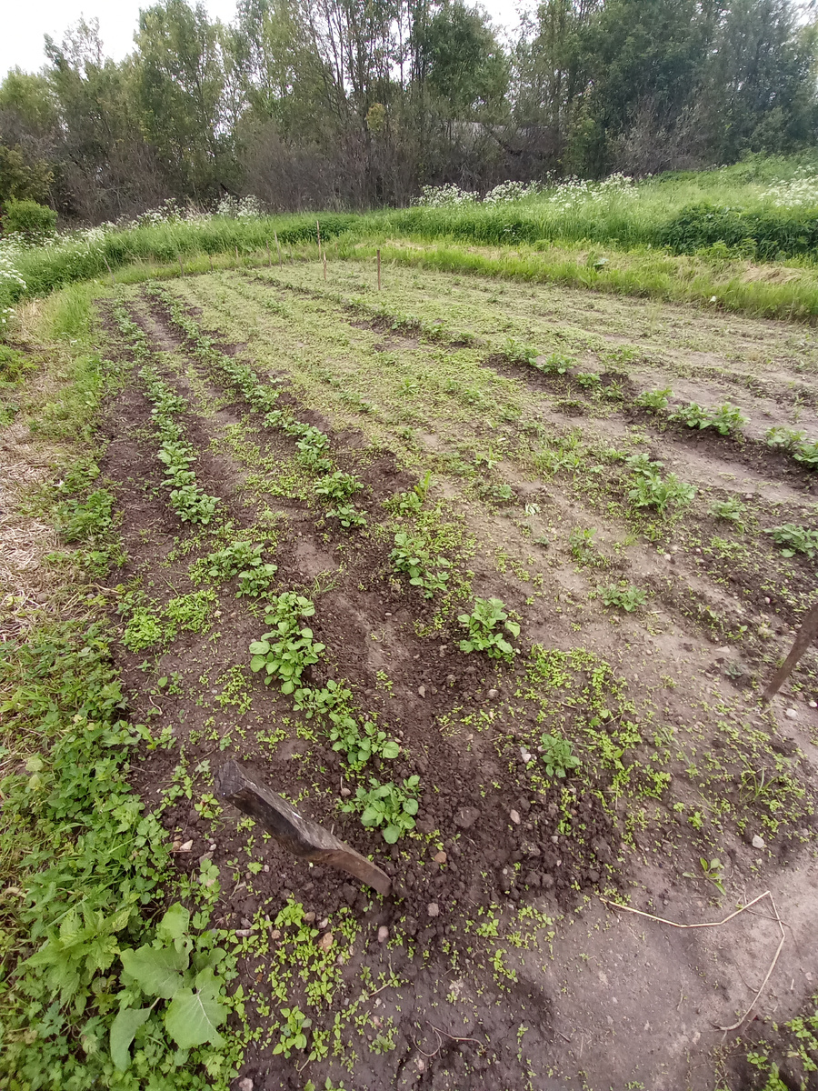 Верней не жизнь, а погода. 🌡️ Хай пиплы! Соскучились чтоль? Правильно. Кто ж вам правду-матку резать будет? Акромя Митьки некому. 🤷♂️ Дожди достали! 😡 Где-то с 9 мая безостановочно. Пипец, блин, а дальше непереводимый, русский, колоритный язык. Воот. Да ещё и холодина! Плюс 15 днём! 🥶 Про ночь вообще молчу. 🤐 Что тут может расти? В таких то условиях. 😢 Но у меня то растёт. 😜 Картошечка потихоньку из земли вылезает. И сразу зацветает. 🤦♂️ Пипец. От горшка два вершка, а всё туда же! Та же история с перцем и физалисом. Охренели блин! Размножаться им подавай! А сами мальчики с пальчик. 🤬 Размножалка ещё не выросла. Огурцы расти не хотят. Крокодил не ловится. Да и кокос не растёт. Улитки жрут всё подряд. 😭 Одни помидоры. 🍅 Черная магия! Это сорт. 😂 Зацвела. А розовый слон оказался и правда слоном! Я таких огромных листьев на помидорах никогда не видел! Стрелки у чеснока полезли. Скоро жарить будем с яичком. 😜😋 Эх, да ещё беда не дают добрые соседи у зомбоящика полежать. ?