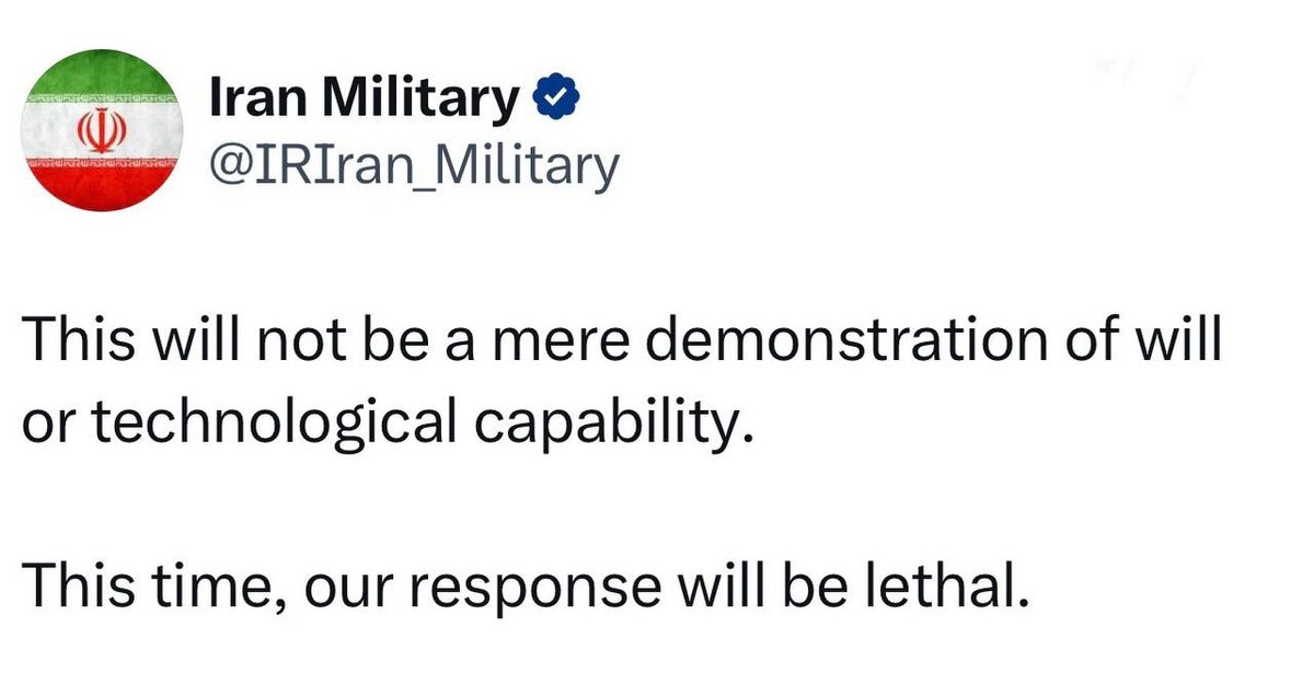 ⏭ Минобороны Ирана - об ответе Израилю: Это будет не просто демонстрация воли или технологических возможностей. На этот раз наш ответ будет смертельным. #КонфликтмеждуИзраилемиИраном ✈️ Новости Азербайджана 🔗 Написать нам