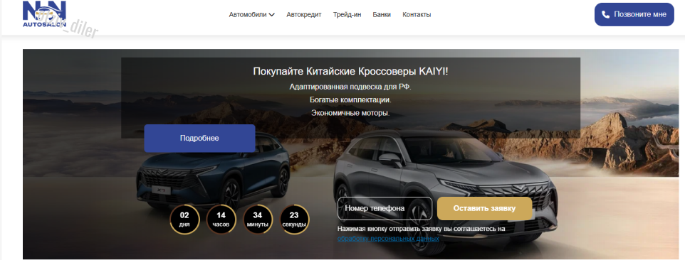 - Тип: мультибрендовый автосалон, лендинг для сбора заявок