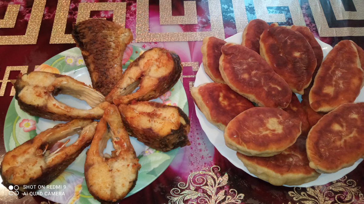 Добрый день мои дорогие друзья . Сегодня я буду готовить пирожки с вишнями . Приготовим сначала тесто : 2 яйца, 1 стакан кефира, 3 столовые ложки сметаны , 1 чайная ложка соды и 1 столовая ложка дрожжей , щепотка соли, 1 столовая ложка сахара. Всё перемешать и добавляем муку, замесить тесто и пусть 40 минут отдохнёт . В вишни добавляем 1 чл сахара , залепили, сформировали пирожок .Затем жарим на растительном масле пирожки до золотистого цвета . Муж впоймал большую рыбку, мы сначала не знали что за чудо рыба. Но потом нам сосед подсказал что это ЖЕРЕХ. Я ее почистила , посолила, обваляла в муке и пожарила на растительном масле . Рыбка получилась очень вкусная, нежная , а главное мало у неё косточек . На эти выходные муж опять поедет на рыбалку на речку С. Донец приготовил снасти и обещал привести опять такую классную и вкусную рыбу ЖЕРЕХ . До новых встреч мои дорогие друзья . Все обнимаю и ценю .
