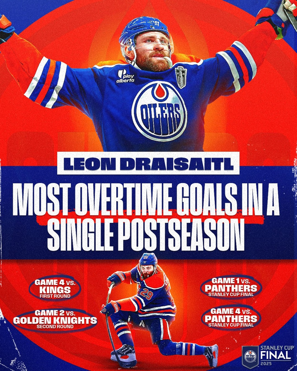 🏆#ПЛЕЙОФФ🏆 Четвёртый матч выдался впечатляющим. Именно за такие игры мы любим хоккей, в частности, плей-офф Кубка Стэнли. После первого периода счёт был 3-0 в пользу хозяев. Дубль оформил Ткачак, дважды реализовав большинство, а также шайбой отметился Лунделл. Первые очки в финале набрал Браков, дважды приняв участие в голах Ткачака. Райнхарт, как и капитан команды, в первом периоде записал на свой счёт 0+2. Ещё одна передача у Верхэге — истинного кубкового бойца. Казалось, что игра сделана. За это ощущение хозяева и поплатились. За второй период гости счёт сравняли стараниями Н-Хопкинса, Нёрса и Подколзина. Драйзайтль записал на свой счёт 0+2, Нёрс добавил к шайбе передачу, Макдэвид, Экхольм и Хенрик по разу выступили ассистентами. В третьей двадцатиминутке Уолмэн даже вывел вперёд свою команду, а Капанен и всё тот же Н-Хопкинс ему в этом помогли. Однако за 20 секунд до конца встречи Райнхарт с передачи Ткачака и Беннетта счёт сравнял и перевёл игру в овертайм. В дополнительное