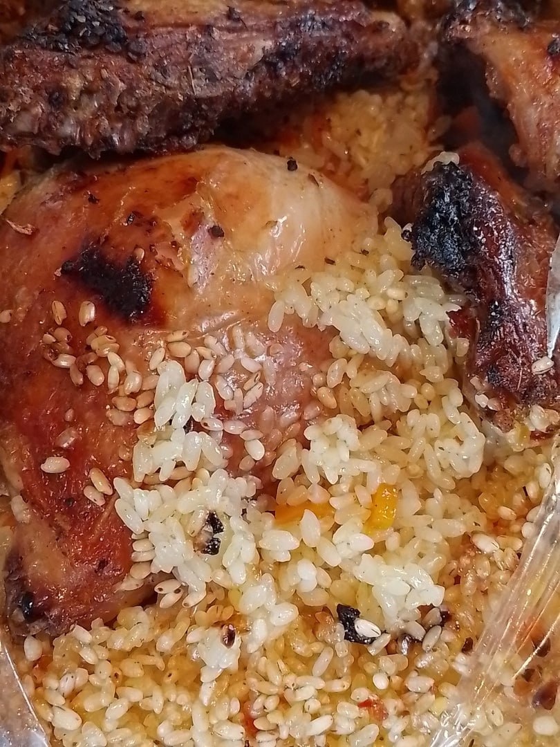 Куриные бедра с рисом в духовке Ингредиенты: Куриные бедра 1 кг. Специи для курицы, у меня смесь пряностей с прованскими травами Рис 1 ст. Вода 2 ст. Морковка - 1 шт. Лук - 1 шт. Перец черный молотый Соль Рукав Приготовление: Бедра хорошо моем, высыпаем в них специи из пакетика, хорошо их обмазываем и оставляем постоять. Если у вас нет такой смеси можно положить всё что вам нравиться: соль, перец, паприка, сушеный чеснок. Рис промываем и выкладываем в пакет для запекания, туда же добавляем мелко нарезанный лук и нарезанную брусочками морковь. Солим, перчим. Можно добавить куркуму и зиру. Всё перемешиваем. Наливаем в пакет воду, добавляем туда бедра. Распределяем всё равномерно по пакету, желательно чтобы рис был снизу, бедра сверху. Кладём пакет на противень и ставим в разогретую до 200 градусов духовку, на 1,5 часа. Приятного аппетита! #рецепты #обед