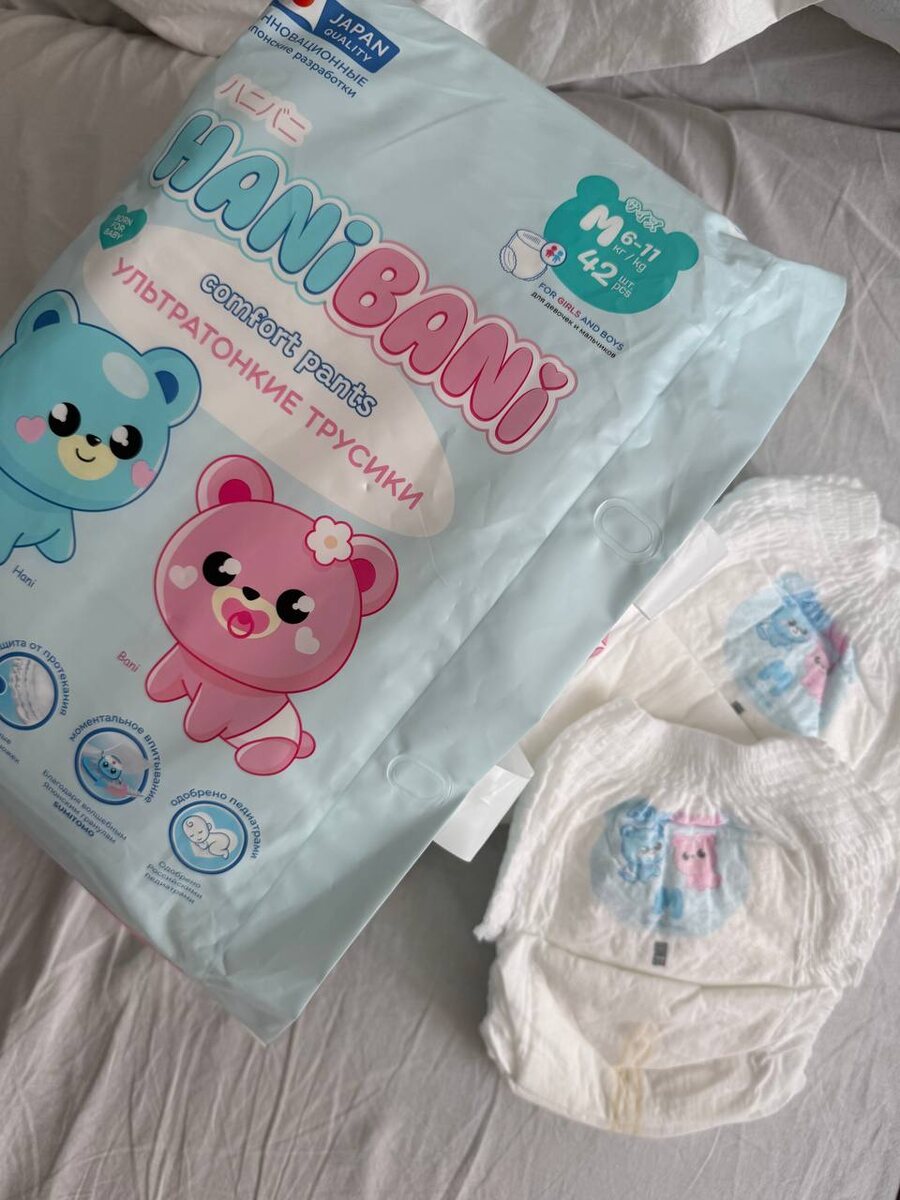 Трусики HaniBani Comfort 🩷🩵- это первые трусики «Уход за кожей 4 в 1! для Вашего малыша :