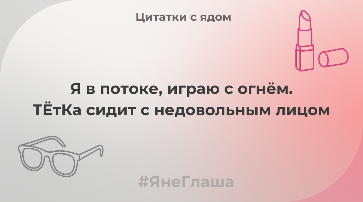 Я в потоке. Не спрашиваю разрешения, не сверяюсь с прогнозом. Делаю, как чувствую. Поступаю, как хочу. Рядом тЁтКа — как кондуктор без автобуса: сама никуда не едет, но билеты на жизнь продаёт всем подряд. А у меня, к счастью, свой маршрут. И он точно не по её схеме. *** #ЯнеГлаша❤️ по своим правилам. #ЦитаткиСya'дом